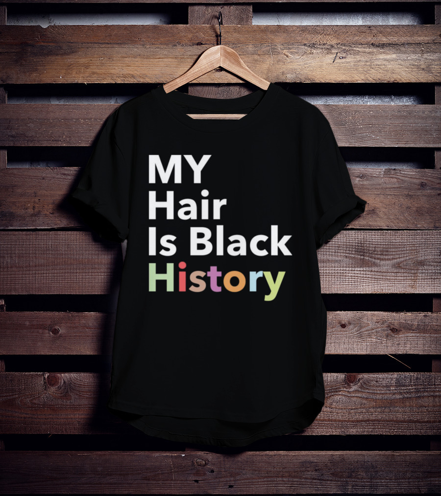MY Hair Is Black History Shirt made from 100% pre-shrunk ring-spun cotton, unisex regular fit based on U.S. standard sizing. The shirt is designed, cut, sewn, and printed in the United States. Available in sizes S-5XL.