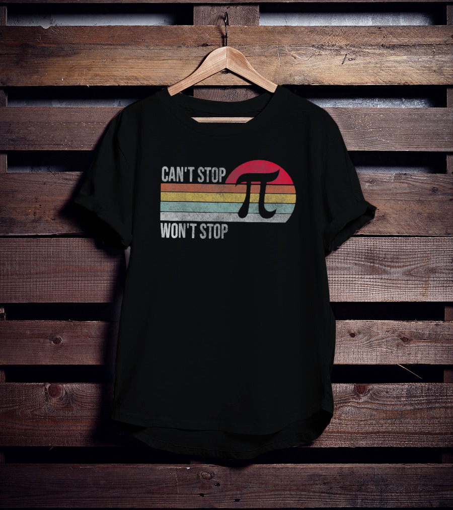 Can't Stop Pi Won't Stop Pi Vintage Math Lover Retro Stripes Shirt made from 100% pre-shrunk ring-spun cotton, unisex regular fit based on U.S. standard sizing. The shirt is designed, cut, sewn, and printed in the United States. Available in sizes S-5XL.