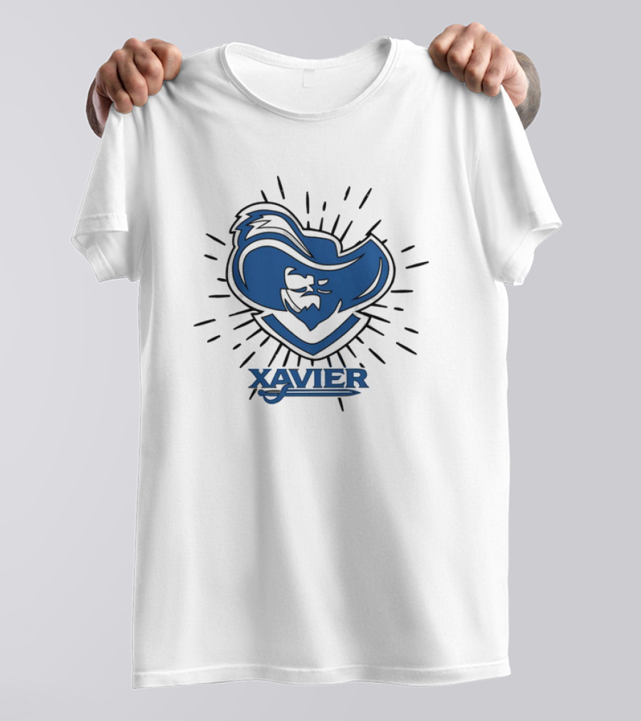 Xavier Musketeer Bold Blue Emblem With Radiating Lines T-Shirt