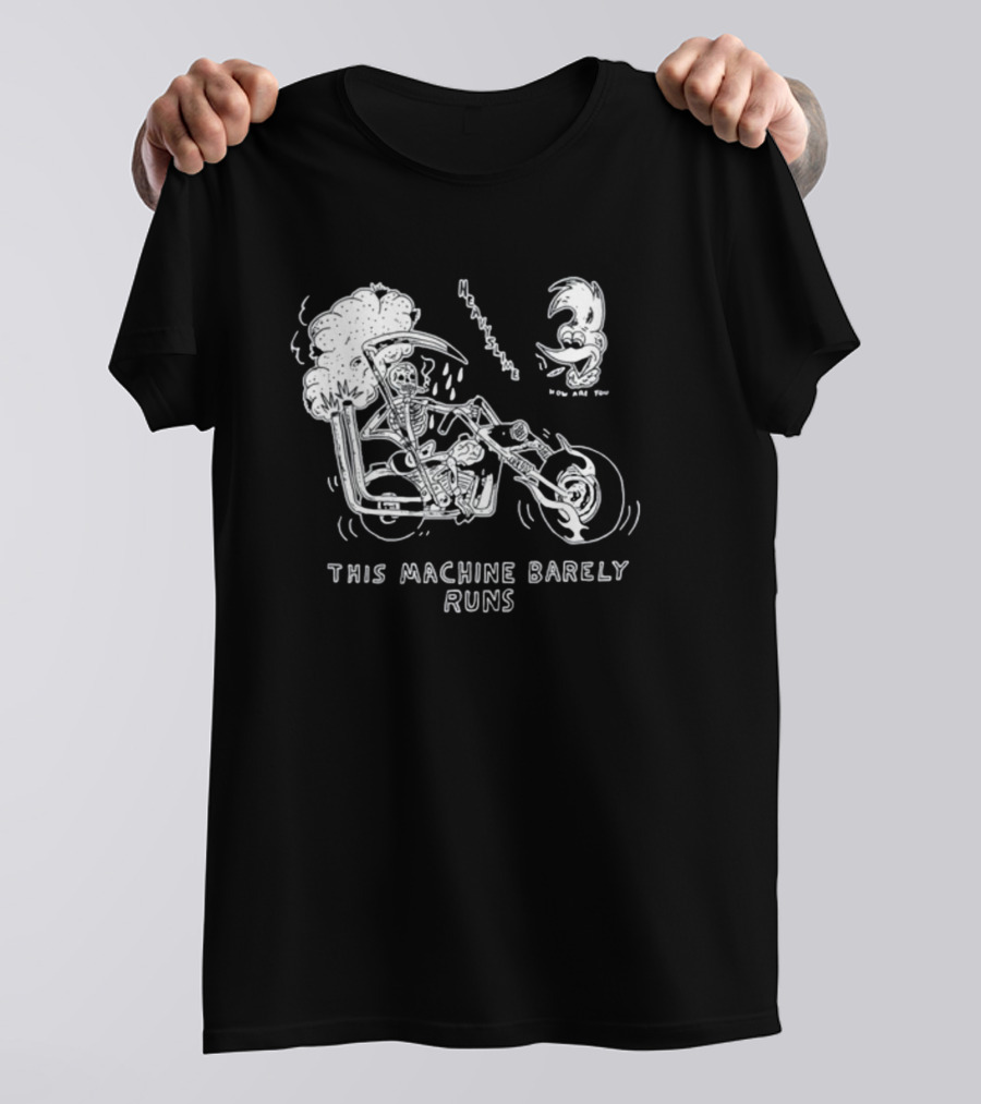 Heavyslime How Are You Skeleton Motorcycle This Machine Barely Runs T-Shirt
