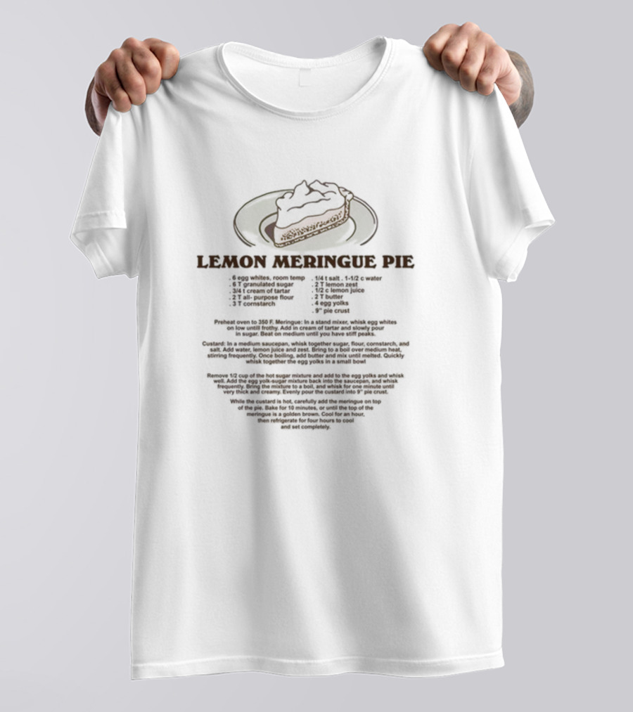 Lemon Meringue Pie Recipe Ingredients And Instructions With Slice T-Shirt