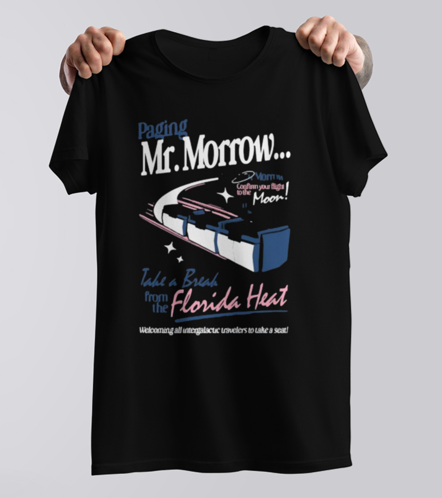 Paging Mr. Morrow Take a Break From the Florida Heat Welcoming All Intergalactic Travelers to Take a Seat Confusing Your Flight to the Moon Shirt made from 100% pre-shrunk ring-spun cotton, unisex regular fit based on U.S. standard sizing. The shirt is designed, cut, sewn, and printed in the United States. Available in sizes S-5XL.