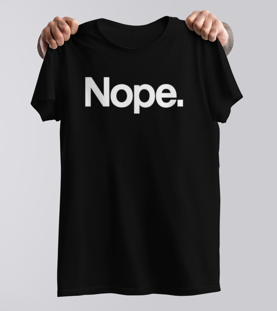 Dawn French Nope Black Shirt made from 100% pre-shrunk ring-spun cotton, unisex regular fit based on U.S. standard sizing. The shirt is designed, cut, sewn, and printed in the United States. Available in sizes S-5XL.