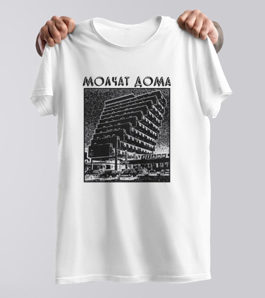 Molchat Doma Soviet Brutalist Architecture Vintage Aesthetic Shirt made from 100% pre-shrunk ring-spun cotton, unisex regular fit based on U.S. standard sizing. The shirt is designed, cut, sewn, and printed in the United States. Available in sizes S-5XL.