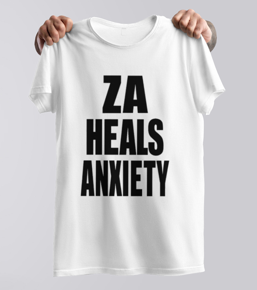 ZA Heals Anxiety Shirt made from 100% pre-shrunk ring-spun cotton, unisex regular fit based on U.S. standard sizing. The shirt is designed, cut, sewn, and printed in the United States. Available in sizes S-5XL.
