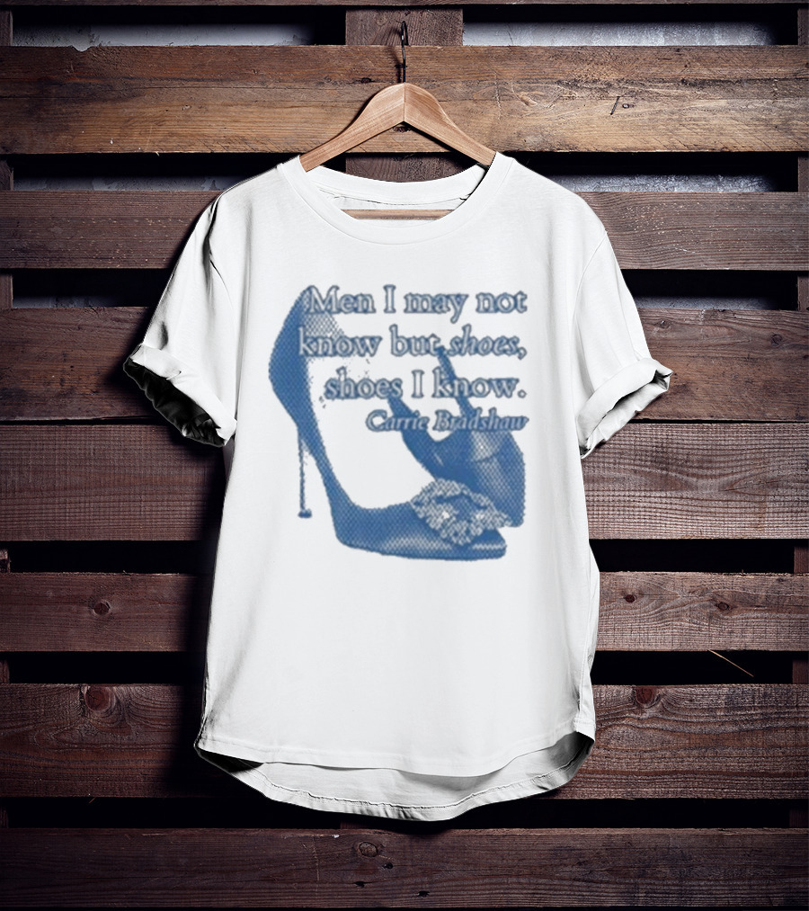 Men I May Not Know but Shoes Shoes I Know Carrie Bradshaw Shirt made from 100% pre-shrunk ring-spun cotton, unisex regular fit based on U.S. standard sizing. The shirt is designed, cut, sewn, and printed in the United States. Available in sizes S-5XL.