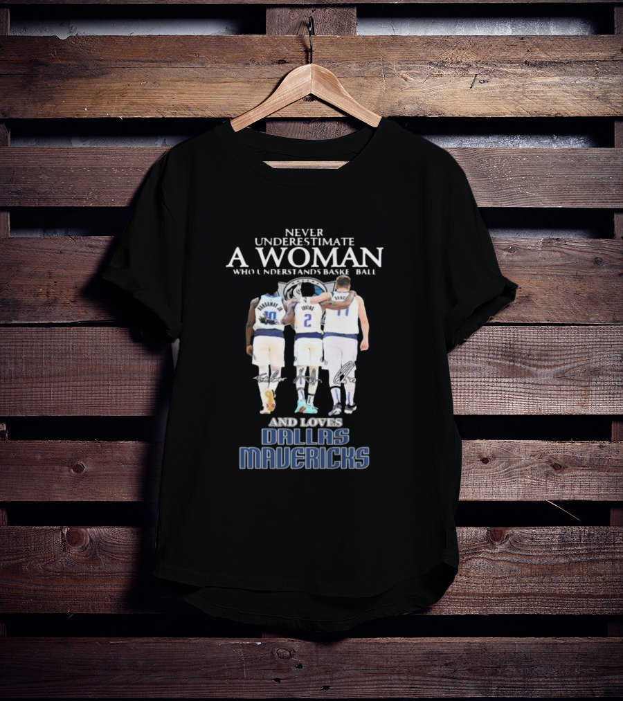 Never Underestimate A Woman Who Understands Basketball And Loves Dallas Mavericks Shirt made from 100% pre-shrunk ring-spun cotton, unisex regular fit based on U.S. standard sizing. The shirt is designed, cut, sewn, and printed in the United States. Available in sizes S-5XL.