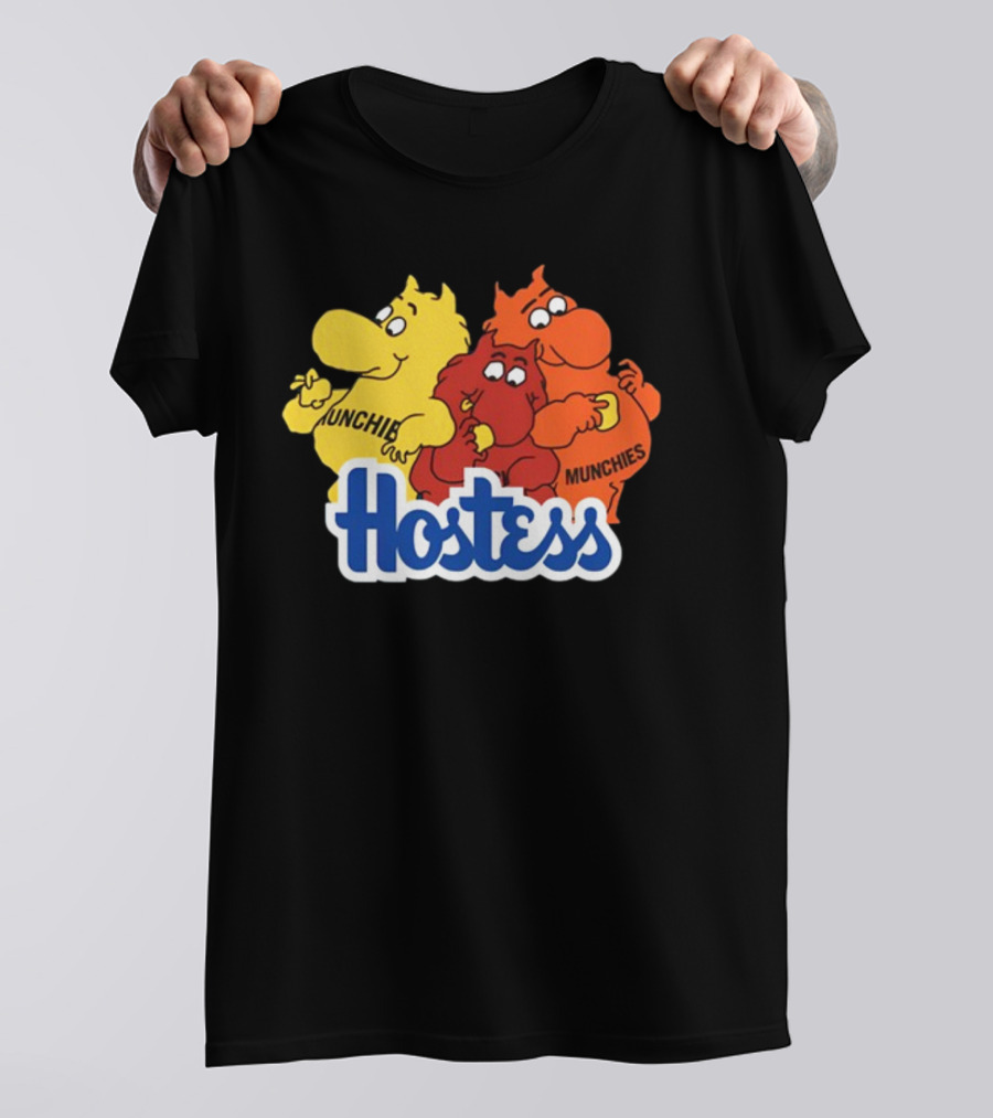 Hostess Munchies Retro Monsters Shirt made from 100% pre-shrunk ring-spun cotton, unisex regular fit based on U.S. standard sizing. The shirt is designed, cut, sewn, and printed in the United States. Available in sizes S-5XL.