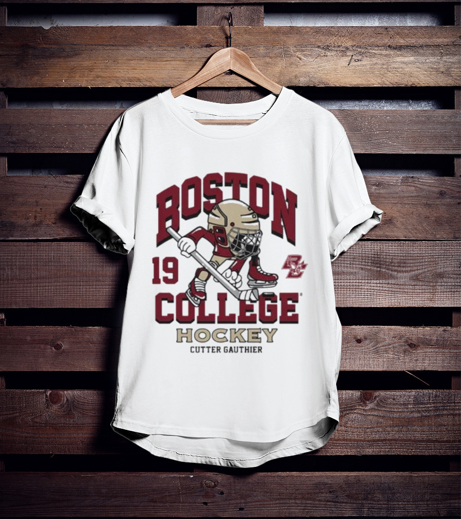 Boston College Eagles Hockey 19 Cutter Gauthier Shirt made from 100% pre-shrunk ring-spun cotton, unisex regular fit based on U.S. standard sizing. The shirt is designed, cut, sewn, and printed in the United States. Available in sizes S-5XL.