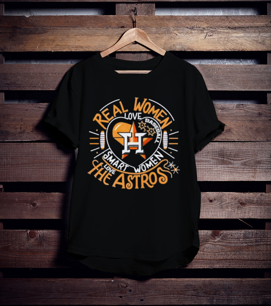Real Women Love Baseball Smart Women Love The Houston Astros Balloon Heart T-Shirt