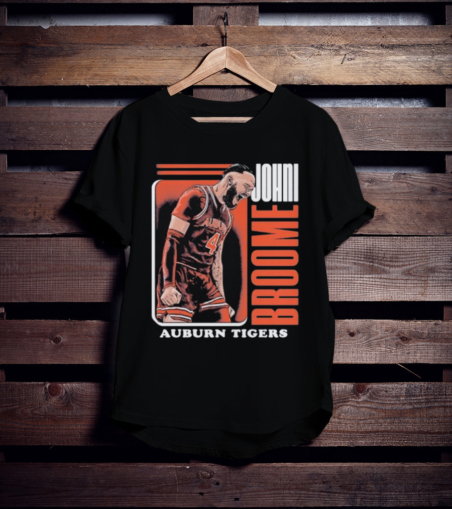 Johni Broome Auburn Tigers Basketball Auburn Tigers Shirt made from 100% pre-shrunk ring-spun cotton, unisex regular fit based on U.S. standard sizing. The shirt is designed, cut, sewn, and printed in the United States. Available in sizes S-5XL.