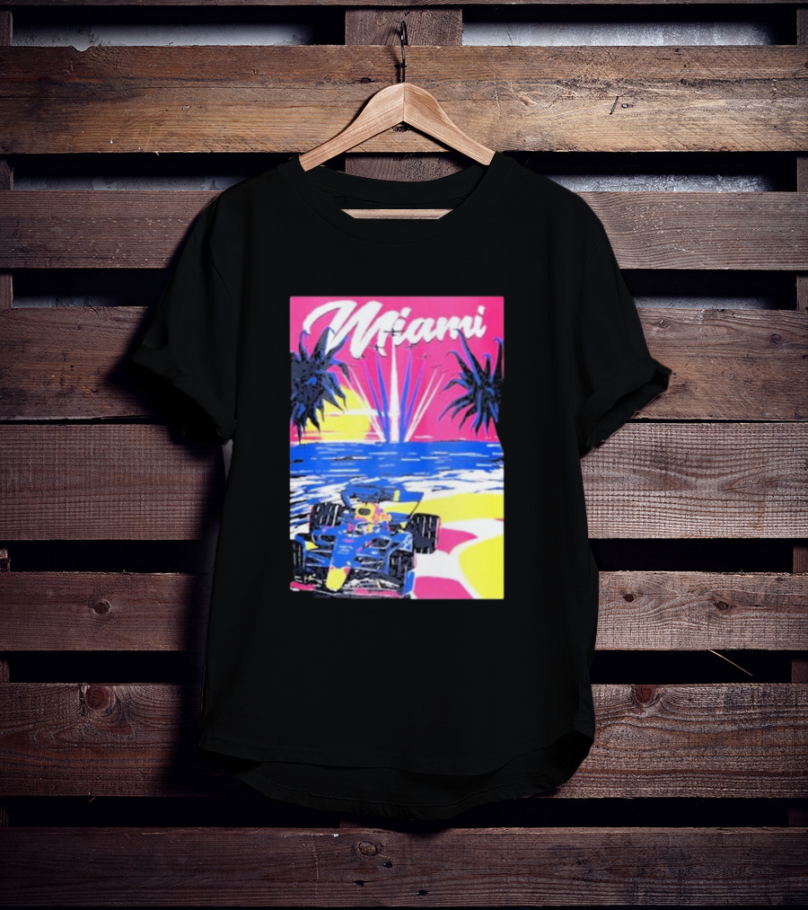 Max Verstappen Formula 1 Miami Sunset Palms Racing Scene T-Shirt