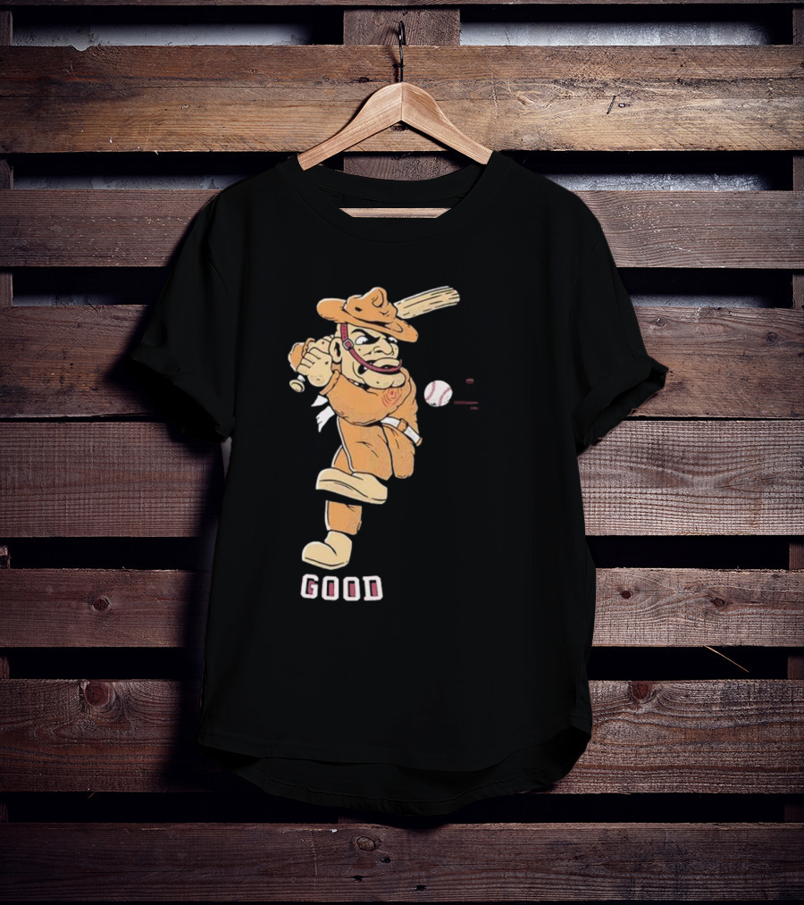 Good Tam Baseball Comic Character Swinging at Pitch Shirt made from 100% pre-shrunk ring-spun cotton, unisex regular fit based on U.S. standard sizing. The shirt is designed, cut, sewn, and printed in the United States. Available in sizes S-5XL.