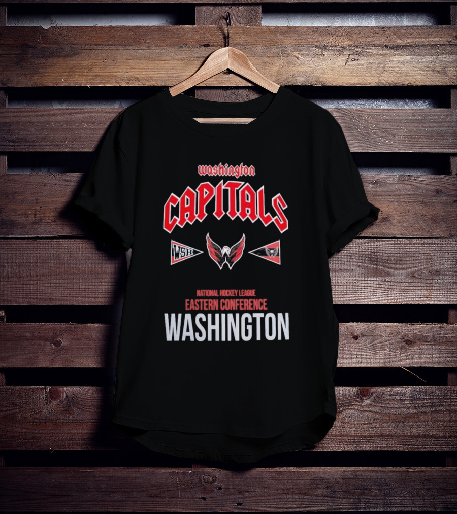 Washington Capitals National Hockey League Eastern Conference City Tour Shirt made from 100% pre-shrunk ring-spun cotton, unisex regular fit based on U.S. standard sizing. The shirt is designed, cut, sewn, and printed in the United States. Available in sizes S-5XL.