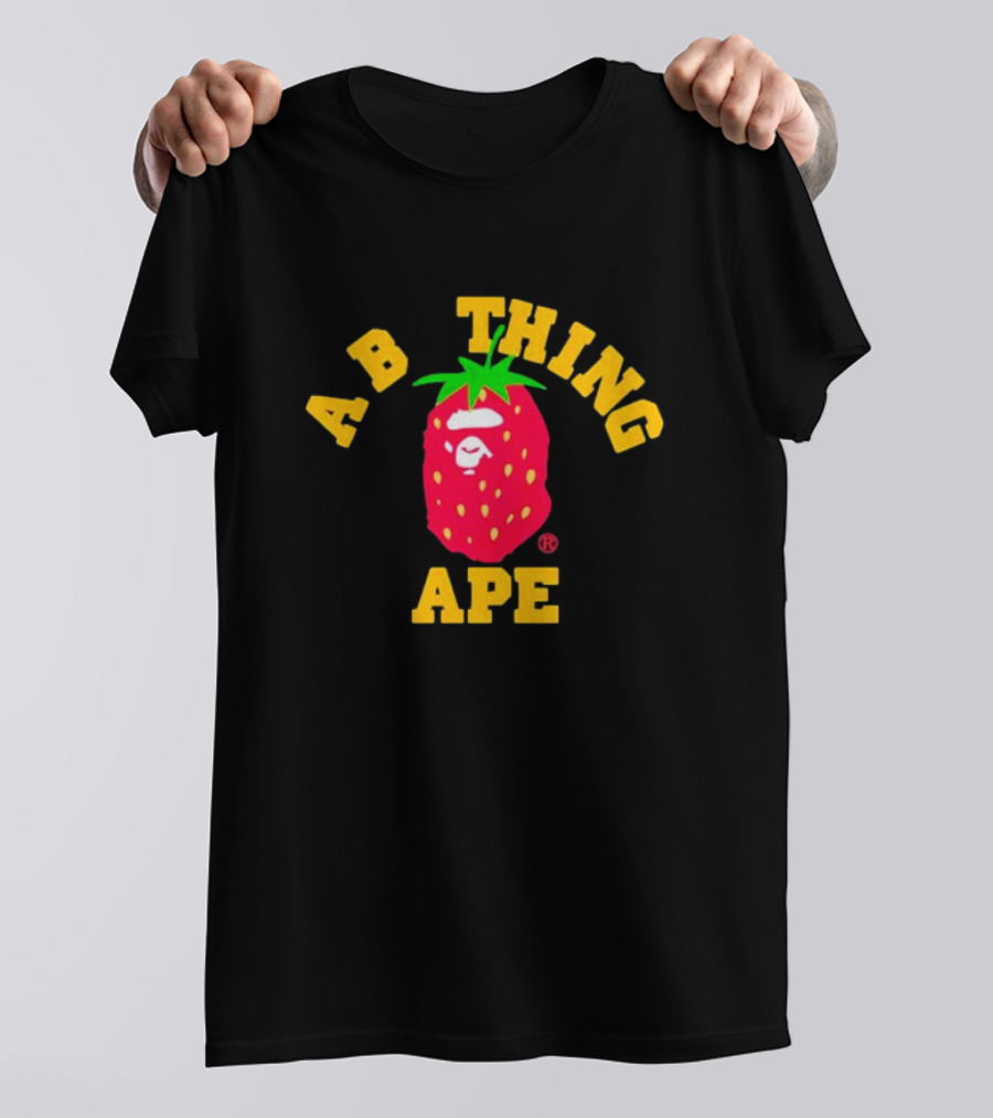 AB Thing Ape Strawberry Shirt made from 100% pre-shrunk ring-spun cotton, unisex regular fit based on U.S. standard sizing. The shirt is designed, cut, sewn, and printed in the United States. Available in sizes S-5XL.