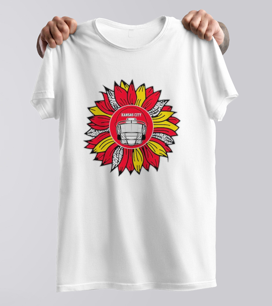 Kansas City Chiefs Football Helmet Sunflower T-Shirt