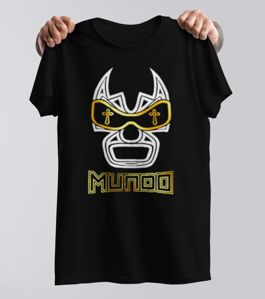 Lucha Underground Mundo Mask Iconic Cross Shirt made from 100% pre-shrunk ring-spun cotton, unisex regular fit based on U.S. standard sizing. The shirt is designed, cut, sewn, and printed in the United States. Available in sizes S-5XL.