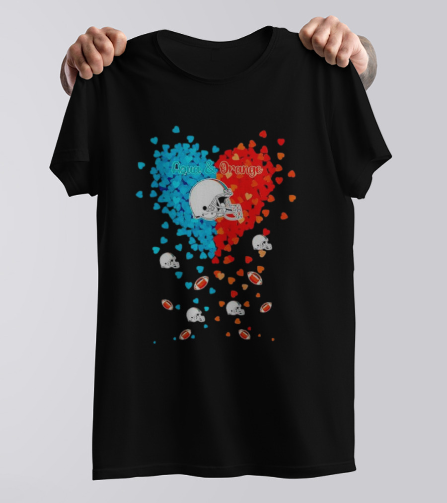Aqua And Orange Miami Dolphins Hearts And Helmets Football T-Shirt