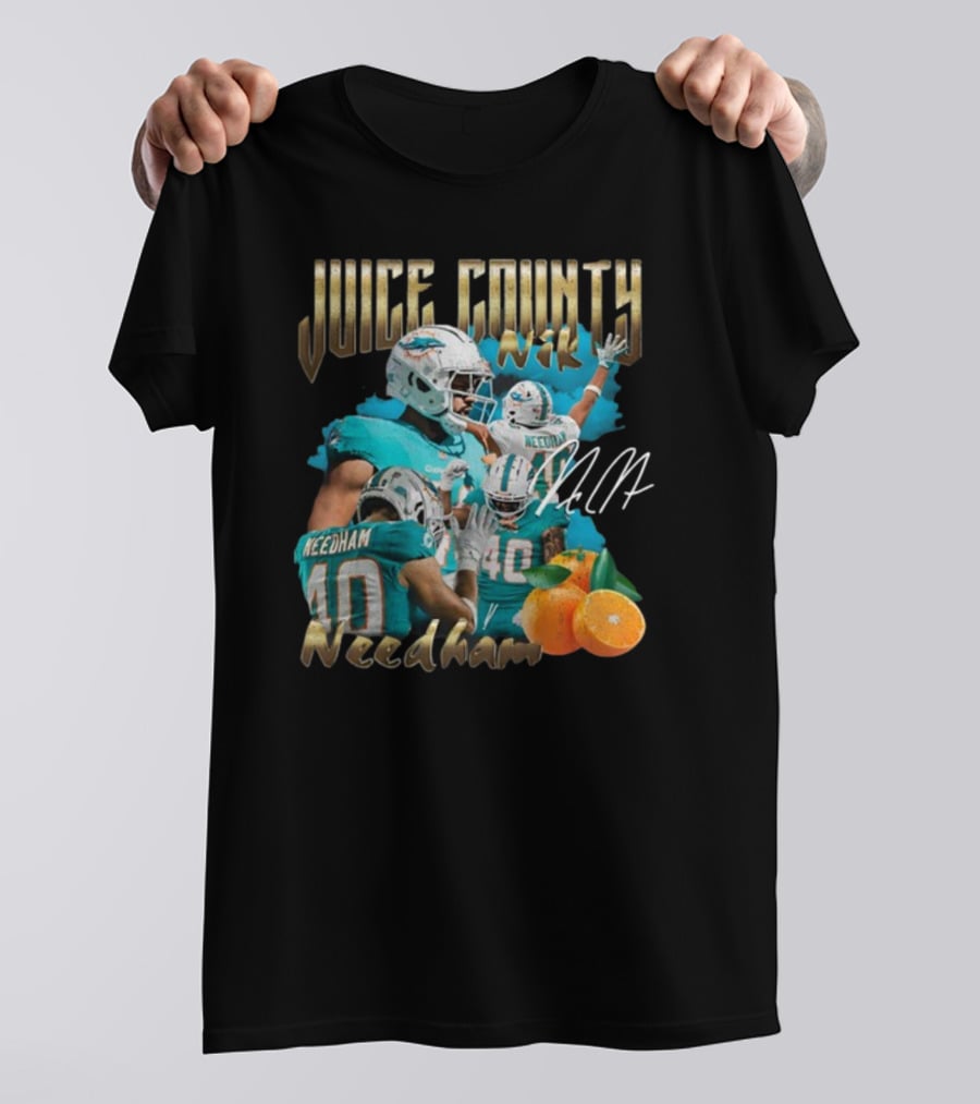 Clincboyzclothing Juice County Nik Needham Dolphins Football Player Signature Oranges T-Shirt