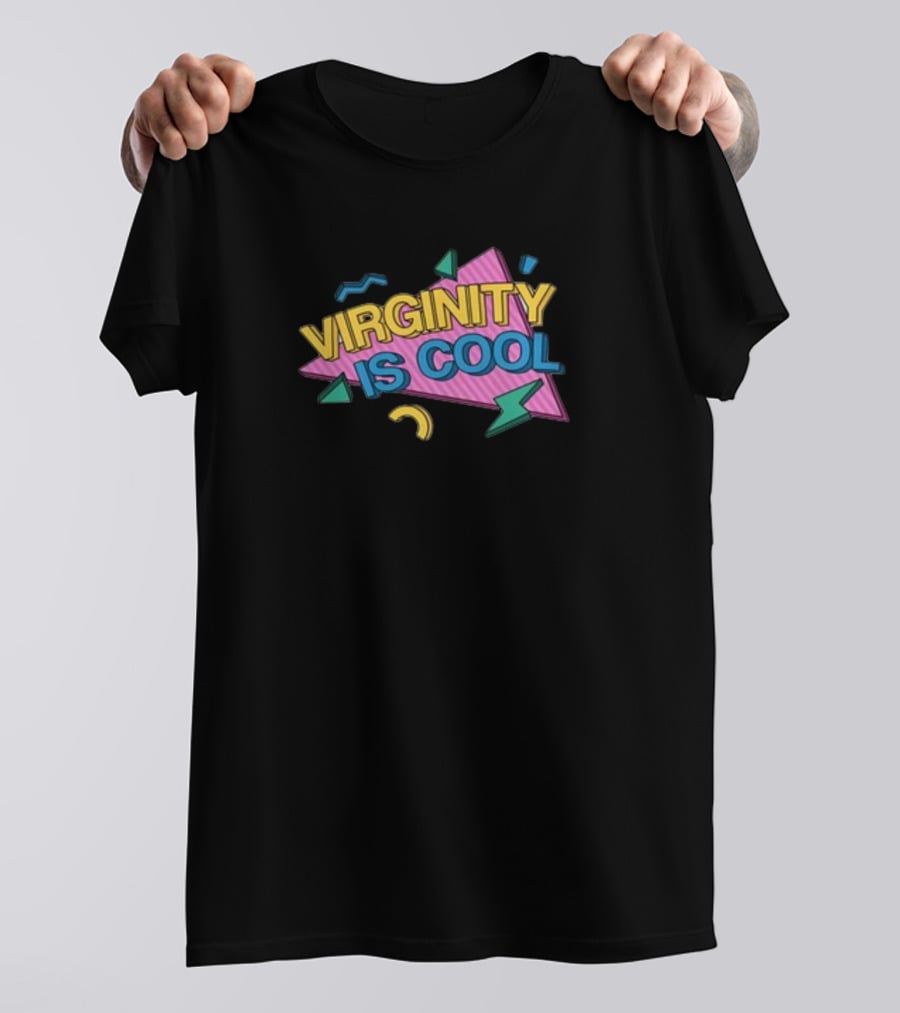 Virginity Is Cool 90s Shirt made from 100% pre-shrunk ring-spun cotton, unisex regular fit based on U.S. standard sizing. The shirt is designed, cut, sewn, and printed in the United States. Available in sizes S-5XL.