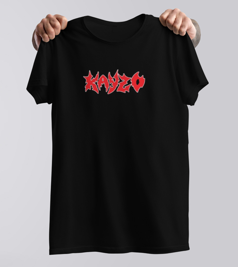 Kayzo Flame Text Shirt made from 100% pre-shrunk ring-spun cotton, unisex regular fit based on U.S. standard sizing. The shirt is designed, cut, sewn, and printed in the United States. Available in sizes S-5XL.