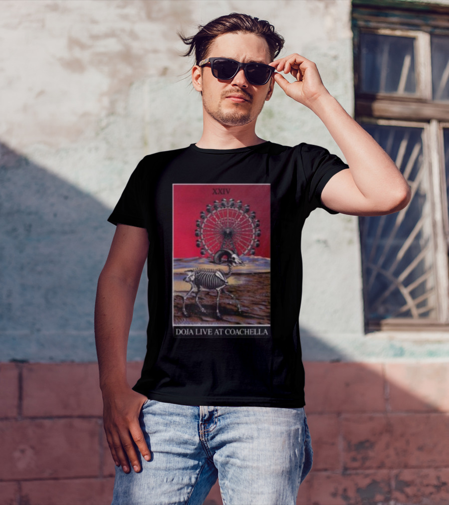 XXIV Doja Live at Coachella Tarot Card Shirt made from 100% pre-shrunk ring-spun cotton, unisex regular fit based on U.S. standard sizing. The shirt is designed, cut, sewn, and printed in the United States. Available in sizes S-5XL.