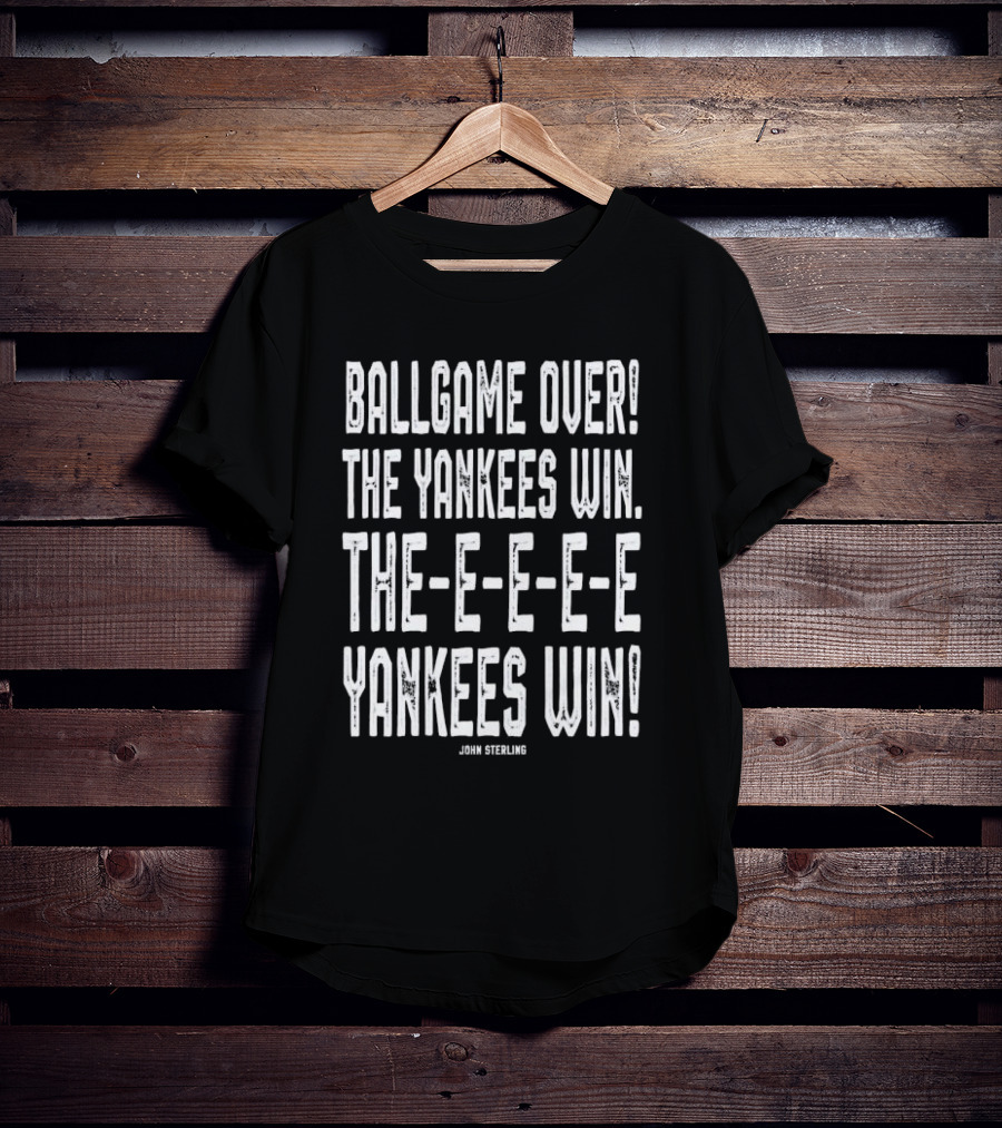 Ballgame Over The Yankees Win John Sterling Catchphrase Shirt made from 100% pre-shrunk ring-spun cotton, unisex regular fit based on U.S. standard sizing. The shirt is designed, cut, sewn, and printed in the United States. Available in sizes S-5XL.