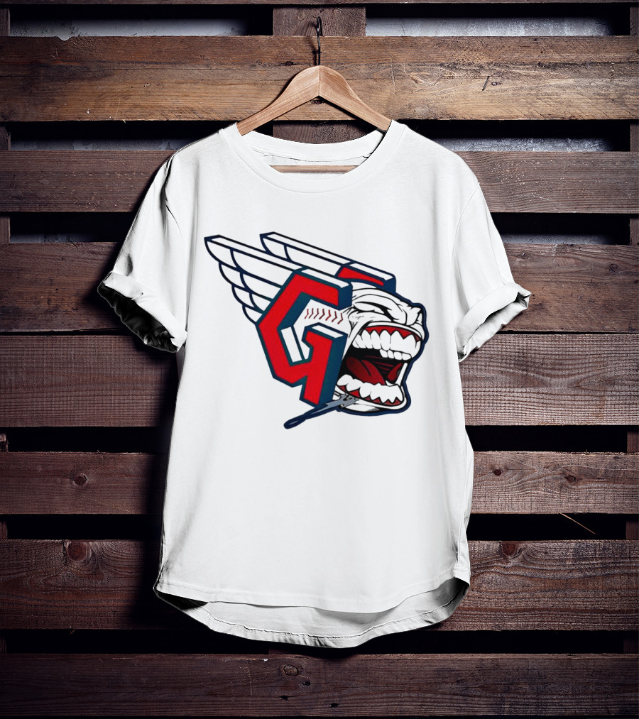 Cleveland Guardians Wings Logo with Fierce Expression Shirt made from 100% pre-shrunk ring-spun cotton, unisex regular fit based on U.S. standard sizing. The shirt is designed, cut, sewn, and printed in the United States. Available in sizes S-5XL.