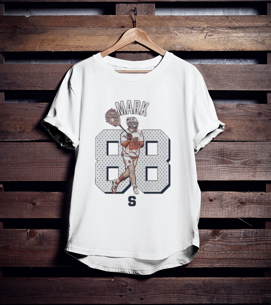 Mark 88 Men's Lacrosse Player Shirt made from 100% pre-shrunk ring-spun cotton, unisex regular fit based on U.S. standard sizing. The shirt is designed, cut, sewn, and printed in the United States. Available in sizes S-5XL.