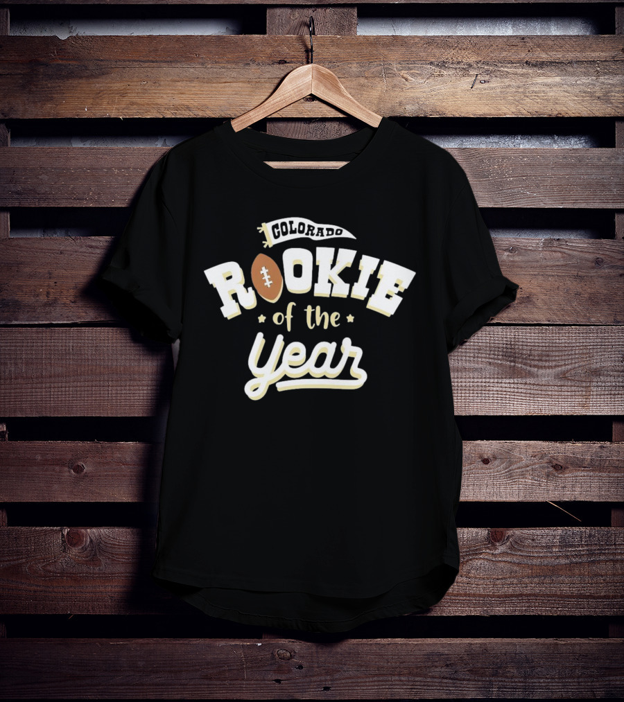 Colorado Rookie of the Year Football Shirt made from 100% pre-shrunk ring-spun cotton, unisex regular fit based on U.S. standard sizing. The shirt is designed, cut, sewn, and printed in the United States. Available in sizes S-5XL.
