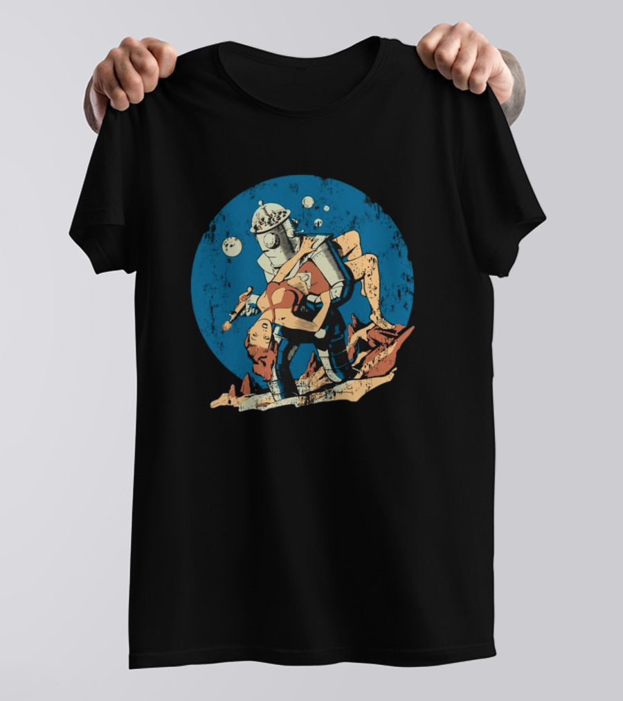 Damselindistress Retro Robot Romance Vintage Sci-Fi Space Adventure T-Shirt