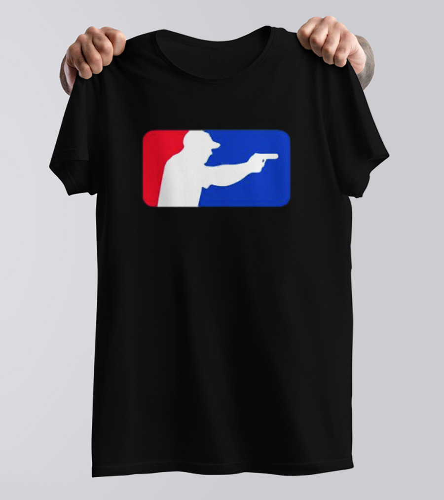 Major League Shooter Silhouette in Red White and Blue Rectangle Shirt made from 100% pre-shrunk ring-spun cotton, unisex regular fit based on U.S. standard sizing. The shirt is designed, cut, sewn, and printed in the United States. Available in sizes S-5XL.
