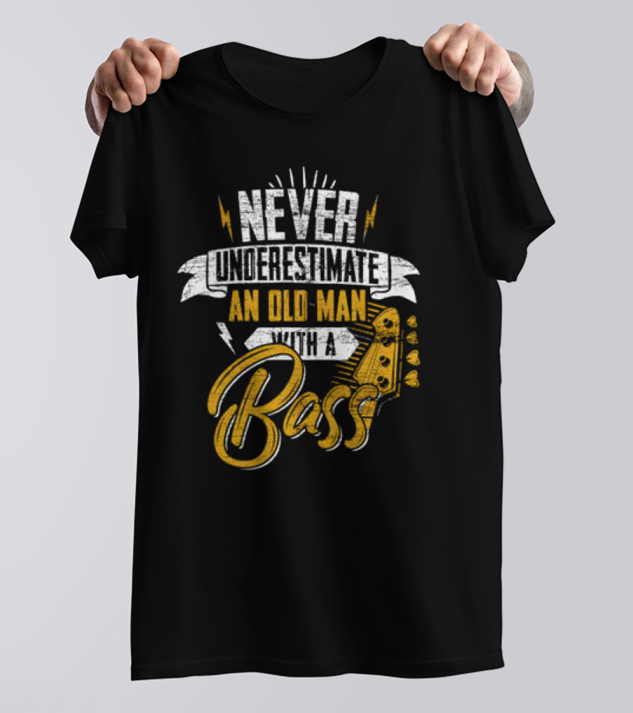 NEVER UNDERESTIMATE AN OLD MAN WITH A BASS Shirt made from 100% pre-shrunk ring-spun cotton, unisex regular fit based on U.S. standard sizing. The shirt is designed, cut, sewn, and printed in the United States. Available in sizes S-5XL.