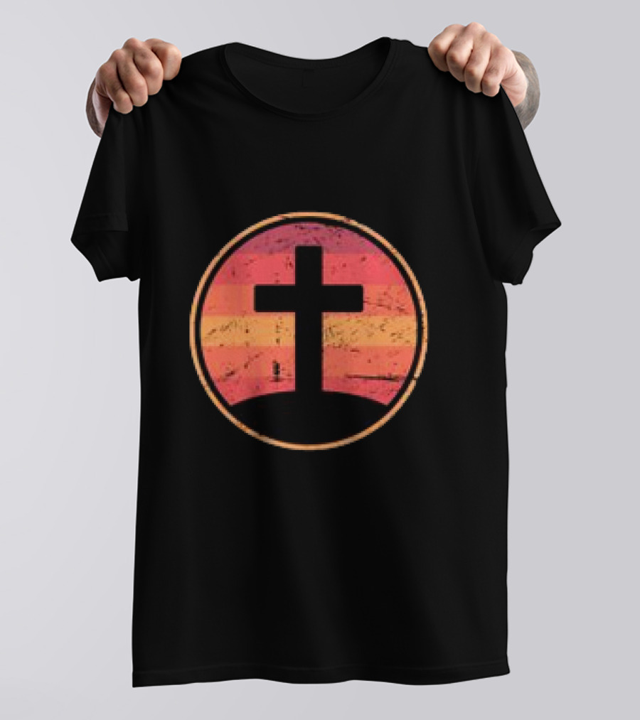 Retro Christian Cross Vintage Sunset on Champion Shirt made from 100% pre-shrunk ring-spun cotton, unisex regular fit based on U.S. standard sizing. The shirt is designed, cut, sewn, and printed in the United States. Available in sizes S-5XL.