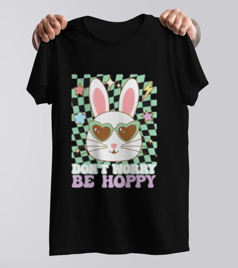 Groovy Retro Easter Bunny Dont Worry Be Hoppy T-Shirt