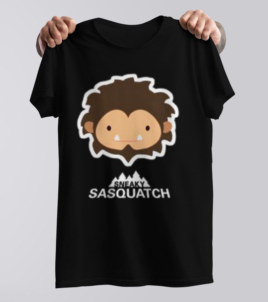 Sneaky Sasquatch Head on Black Gildan Ultra Cotton Shirt made from 100% pre-shrunk ring-spun cotton, unisex regular fit based on U.S. standard sizing. The shirt is designed, cut, sewn, and printed in the United States. Available in sizes S-5XL.