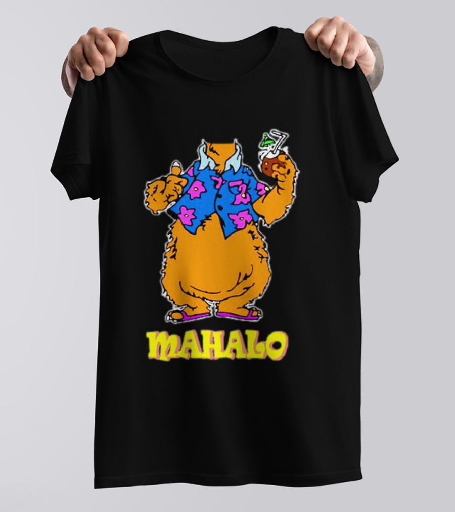 Tammy Mahalo Tropical Bear in Hawaiian Shirt with Drink Shirt made from 100% pre-shrunk ring-spun cotton, unisex regular fit based on U.S. standard sizing. The shirt is designed, cut, sewn, and printed in the United States. Available in sizes S-5XL.