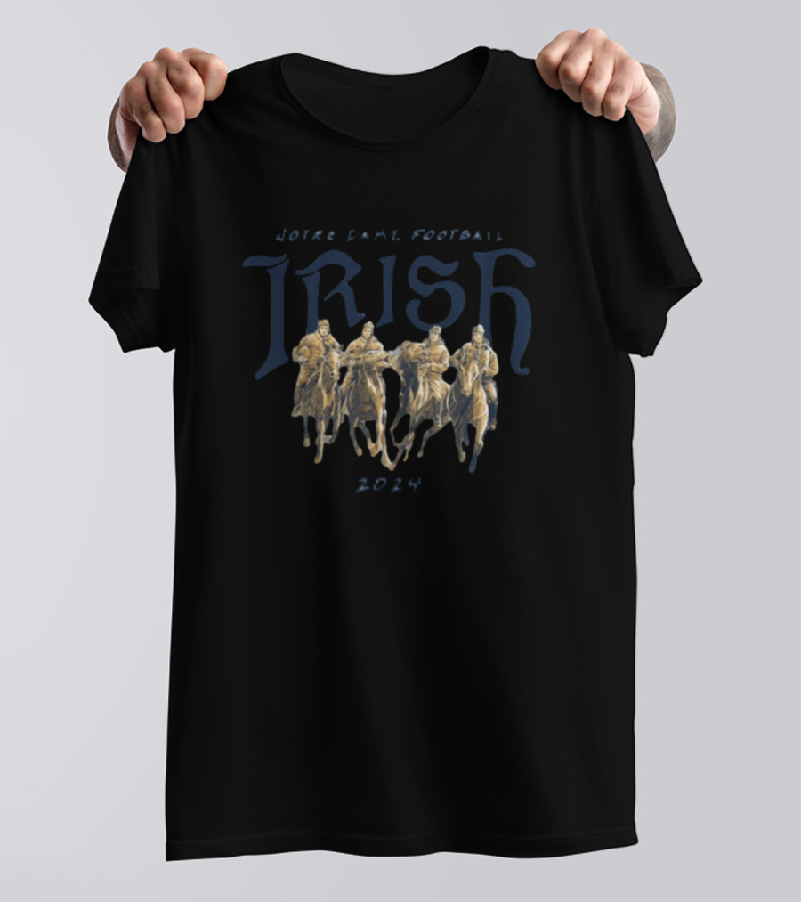 Notre Dame Football Irish Shirt made from 100% pre-shrunk ring-spun cotton, unisex regular fit based on U.S. standard sizing. The shirt is designed, cut, sewn, and printed in the United States. Available in sizes S-5XL.