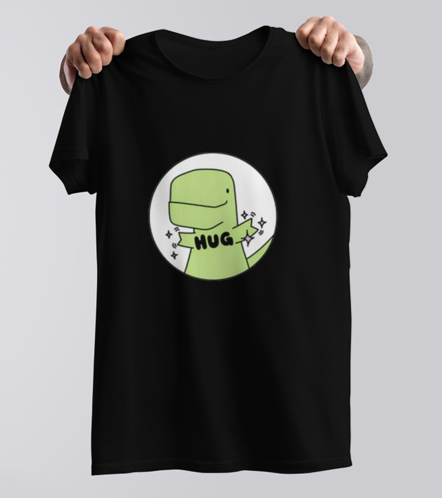 Timmy Hug Dinosaur with Stars Shirt made from 100% pre-shrunk ring-spun cotton, unisex regular fit based on U.S. standard sizing. The shirt is designed, cut, sewn, and printed in the United States. Available in sizes S-5XL.