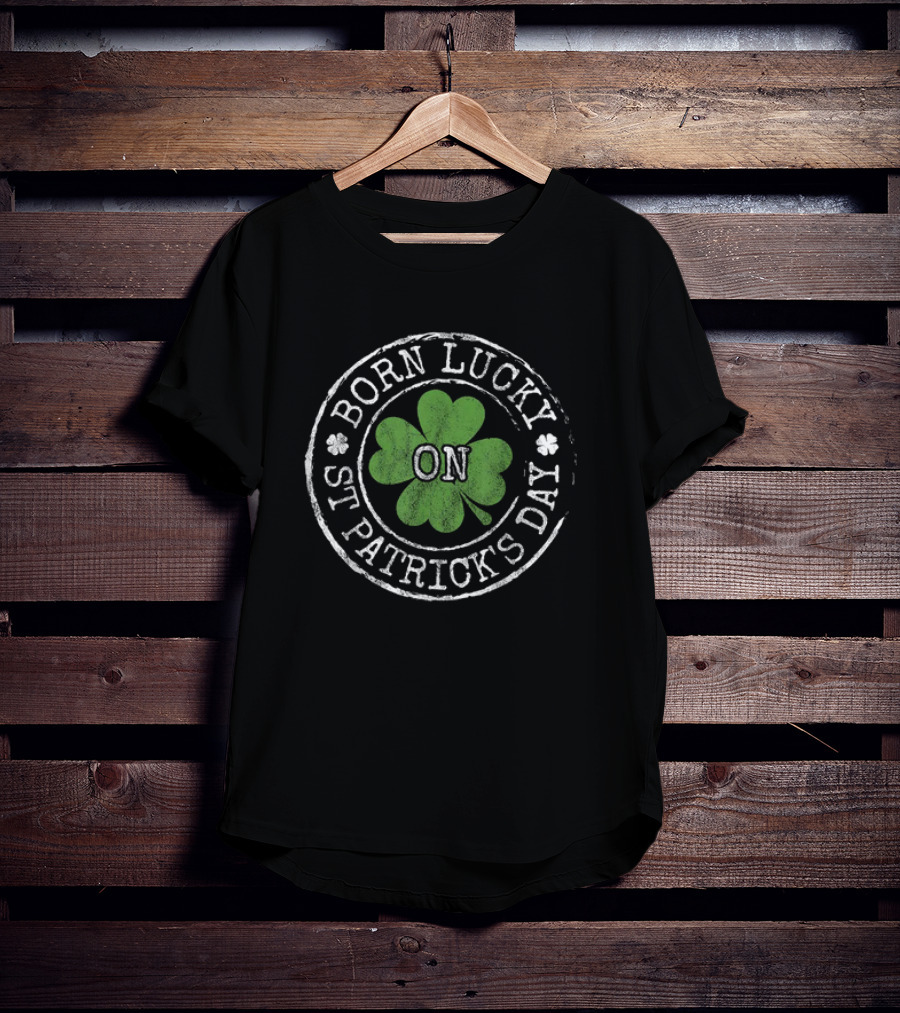 Born Lucky On St Patricks Day Irish Clovers T-Shirt