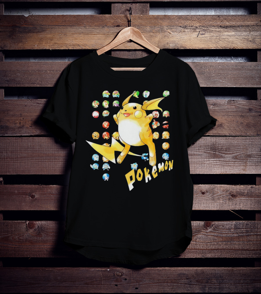Pokemon Pikachu and Classic Characters Collection Shirt made from 100% pre-shrunk ring-spun cotton, unisex regular fit based on U.S. standard sizing. The shirt is designed, cut, sewn, and printed in the United States. Available in sizes S-5XL.
