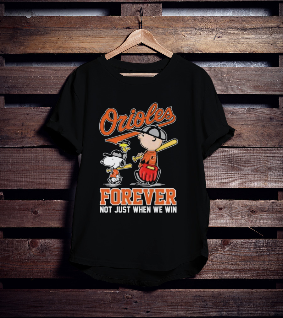 Orioles Forever Not Just When We Win Charlie Brown Snoopy Woodstock Walking T-Shirt
