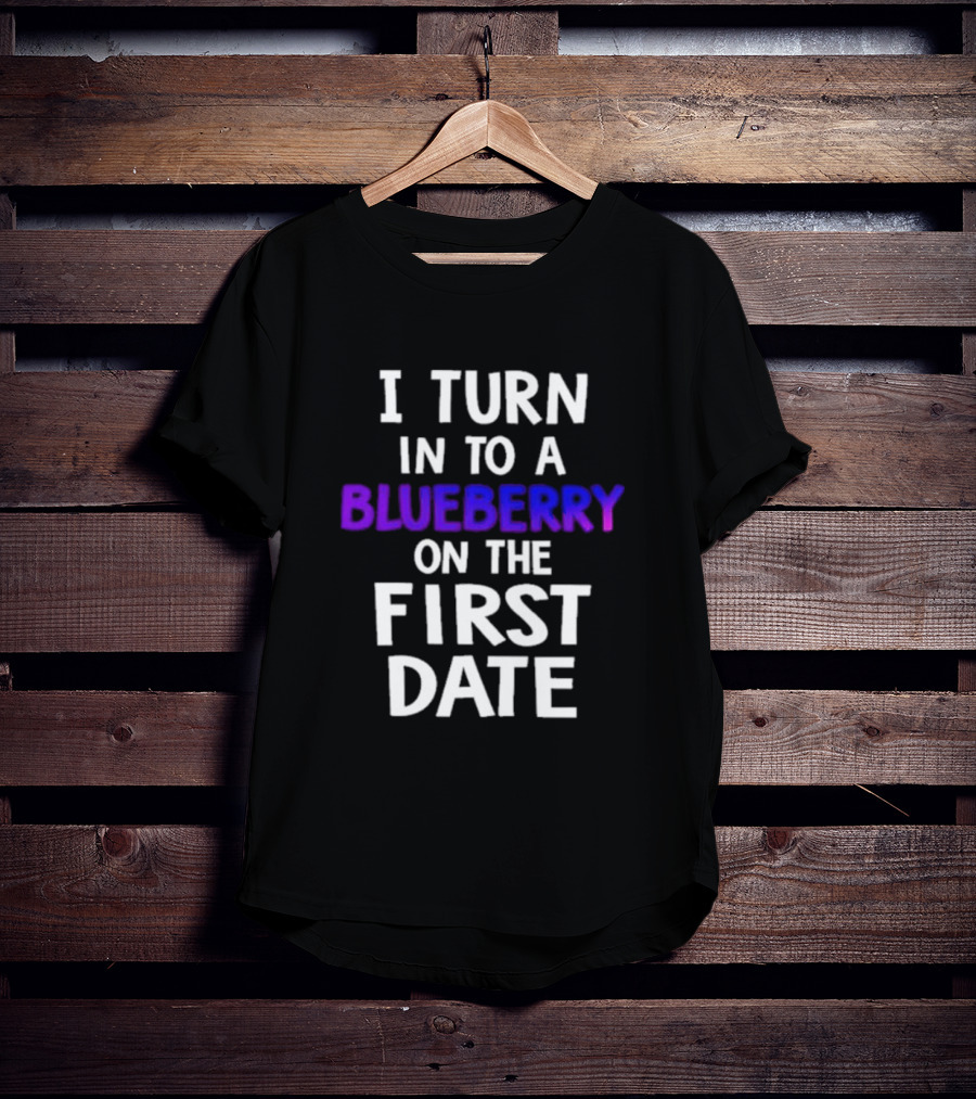 I Turn Into A Blueberry On The First Date Shirt made from 100% pre-shrunk ring-spun cotton, unisex regular fit based on U.S. standard sizing. The shirt is designed, cut, sewn, and printed in the United States. Available in sizes S-5XL.