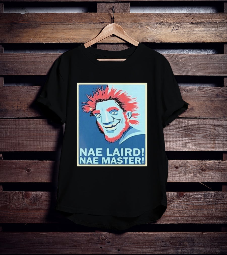 NAE LAIRD NAE MASTER Red-Haired Character Shirt made from 100% pre-shrunk ring-spun cotton, unisex regular fit based on U.S. standard sizing. The shirt is designed, cut, sewn, and printed in the United States. Available in sizes S-5XL.