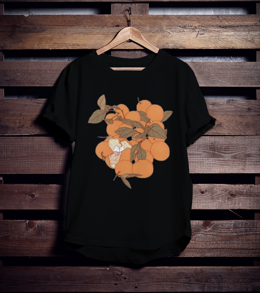 Sweet Citrus Delicate Orange Fruits with Leaves Shirt made from 100% pre-shrunk ring-spun cotton, unisex regular fit based on U.S. standard sizing. The shirt is designed, cut, sewn, and printed in the United States. Available in sizes S-5XL.