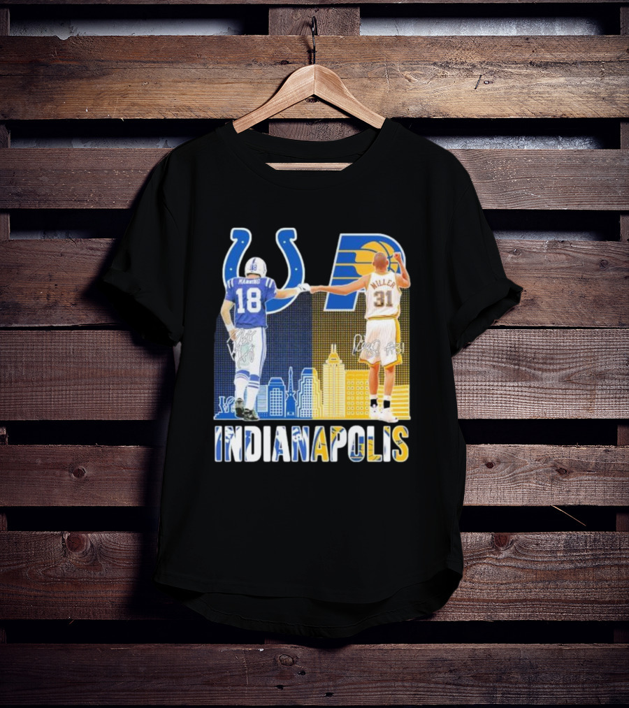 Manning Miller Indianapolis Colts Pacers Signatures Legends Shirt made from 100% pre-shrunk ring-spun cotton, unisex regular fit based on U.S. standard sizing. The shirt is designed, cut, sewn, and printed in the United States. Available in sizes S-5XL.