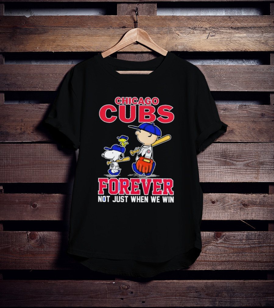 Chicago Cubs Forever with Snoopy and Peanuts Not Just When We Win Shirt made from 100% pre-shrunk ring-spun cotton, unisex regular fit based on U.S. standard sizing. The shirt is designed, cut, sewn, and printed in the United States. Available in sizes S-5XL.