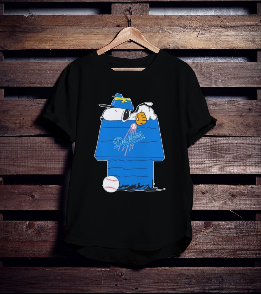 Snoopy And Woodstock Sleeping On Los Angeles Dodgers Doghouse With Baseball T-Shirt
