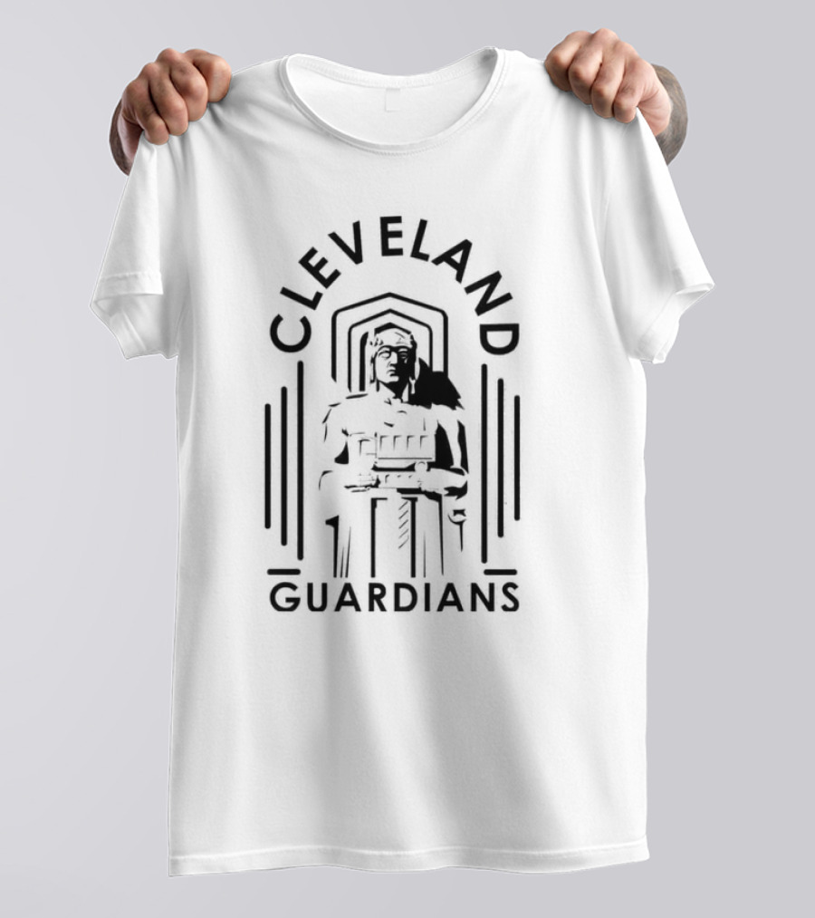 Cleveland Guardians Statue Shirt made from 100% pre-shrunk ring-spun cotton, unisex regular fit based on U.S. standard sizing. The shirt is designed, cut, sewn, and printed in the United States. Available in sizes S-5XL.