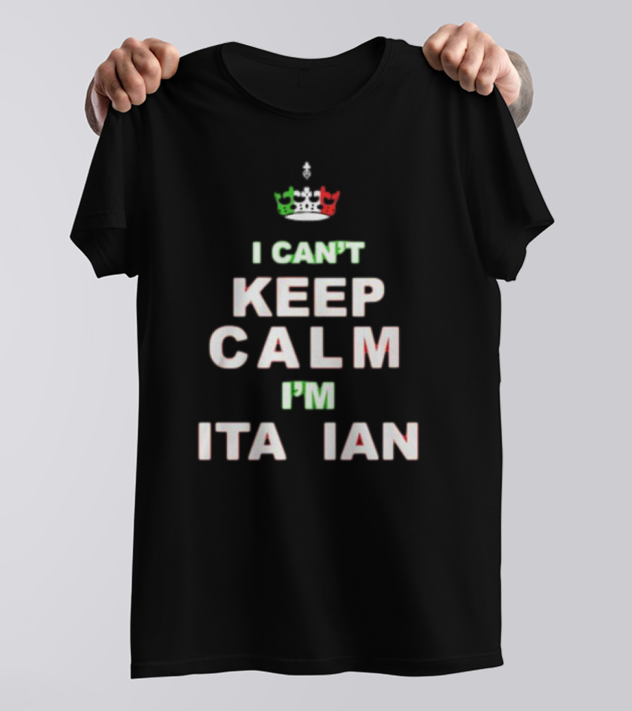 'Merican AF I Can’t Keep Calm I’m Italian Crown Keep Calm Italian Flag Colors Shirt made from 100% pre-shrunk ring-spun cotton, unisex regular fit based on U.S. standard sizing. The shirt is designed, cut, sewn, and printed in the United States. Available in sizes S-5XL.